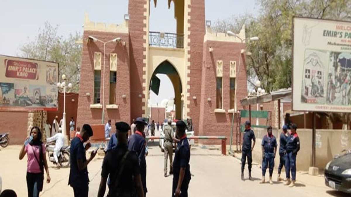 Rundunar jami'an tsaro a ranar Litinin ta tsinkayi fadar Sarkin Kano da ke jihar Kano. Wannan ya biyo bayan tumbuke Sarkin Kano, Malam Muhammadu Sanusi II da ofishin gwamnan jihar yayi.