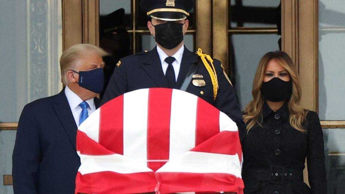 Shugaban kasa Donald da matarsa sun tsaya ne kusa da akwatin gawar Ginsburg, suna rike da tutar Amurka, yayin da sauran mutane ke kan matattakalar ginin kotun, wasu kuma suna bayan gine-ginen dake gefen kotun suna mishi ihun.