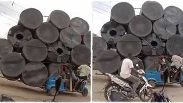 Bidiyon Yadda Dan Adaidaita Ya Jera Tankunan Ruwa 13 a Kan Keke Ya Girgiza Intanet