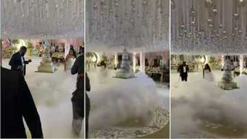 Kuɗi ƙare magana: Bidiyon kek ɗin biki yana saukowa daga hadari yasa ƴan biki kurma ihu