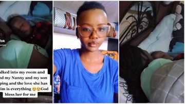"Kaunarsa Take" Wata Mata Ta Nuna Farin Ciki a Bidiyo Lokacin Da Ta Kama Yar Aiki Ta Kwanta da Ɗanta