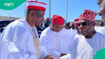 Gwamna Kano, Abba Kabir Yusuf, mataimakinsa Kwamred AbdulSalam Gwarzo, Sanata Rabi’u Musa Kwankwaso da sauran manyan jami’an gwamnati ne su ka tarbi Cif Olusegun Obasanjo.