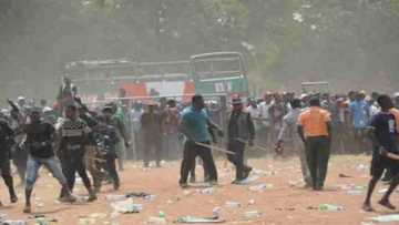Legit.ng Hausa ta faminci cewa Jami'an rundunar 'yan sanda ɗauke da makaman aiki sun fatattaki 'yan daban daga wurin, suka samar da ingantaccen tsaro a rumfar.